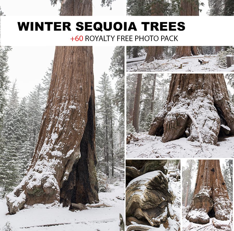 This pack contains a very special selection of photos of snowy sequoias/redwood trees, also includes wood with snow textures.